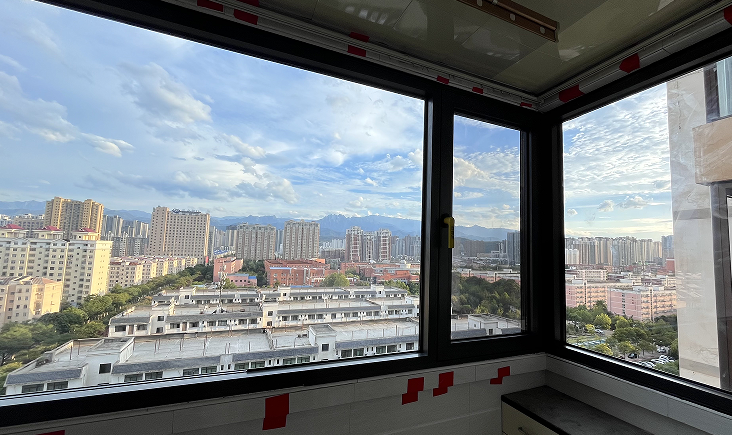 经过一天的精心安装,换新后效果立竿见影:关上窗,北阳台外面马路上车流的噪音明显降低,视野开阔犹如打开了新世界,眼底风光忽然宽了半座城,明亮清透,远山蓝天白云映入眼帘,远处的云都像贴得更近,伸手能触到似的。