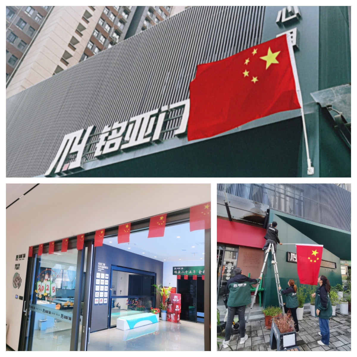 当秋风拂过楼宇,一抹抹鲜艳的中国红正悄然绽放。为庆祝中华人民共和国成立76周年,公司已精心悬挂起五星红旗,让国旗在蓝天白云下迎风飘扬。这一面面国旗,不仅是对祖国母亲最真挚的祝福,更是我们全体铭亚人爱国情怀的生动体现。