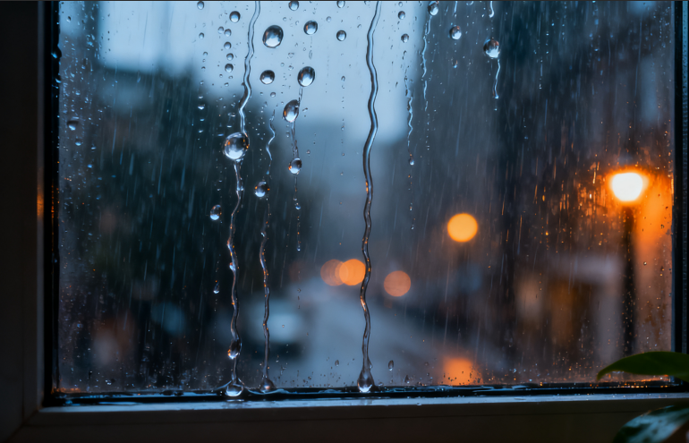 1、降雨时(无论大小):即使是毛毛雨,室外湿度也接近 100%,开窗会让潮气 “批量涌入”,导致墙面、地板出水;